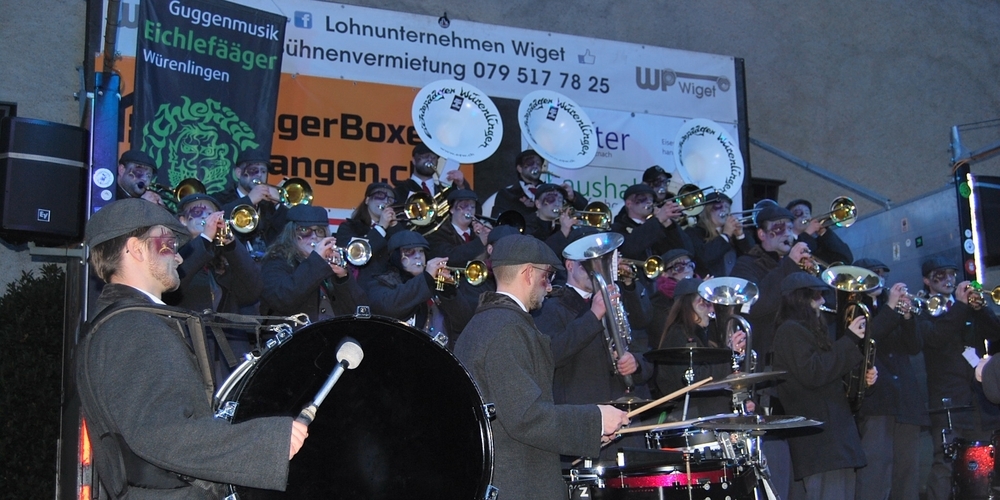 Das nächtliche Spektakel lockte auch dieses Jahr überraschend viele Fasnachtsfreunde an. Ein kunterbunter Konfettiregen wirbelte durch die Luft. «Gfürchigi Hexen» zerzausten ihre Opfer und tauchten sie in die Konfettiwanne. Bei der kleinen Feuerspuck-Show blieb den Besuchern beinahe die Spucke weg, wenn sich die Häuserfront erhellte. Die lieblichere Seite war das Verteilen von Süssigkeiten, heisser Getränke oder gebrannter Tropfen. Die Bühnenauftritte der Gugger schafften eine Atmosphäre, die sowohl für Zuhörer als auch für Aktive unvergesslich bleibt. Die Durchgangsstrasse blieb lange nach dem Umzug gut bevölkert, bis die Putzequipe allmählich Druck machte, den Verkehr durchs Städtchen fliessen zu lassen. Der Aufwand lohnte sich auch dieses Jahr.