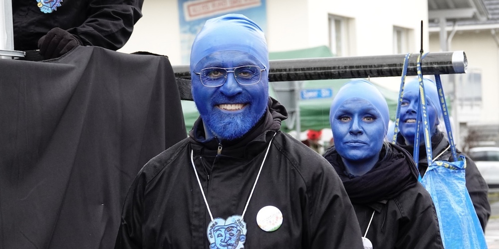 Der Bänggner Fasnachtsvirus hat es in sich, denn er erwischt jeden, der sich auf den Strassen herumtreibt. Etwas Linderung verschafft nur die handbemalte Plakette für 10 Franken, denn ohne sie ist man dem närrischen Treiben schutzlos ausgeliefert. Gestärkt mit einer Portion Fischknusperli von Bernhard Zahner – den besten nördlich der Alpen – am Stand von «gschniglät Gwändliservice», stürzte sich Linth24 ins Getümmel.