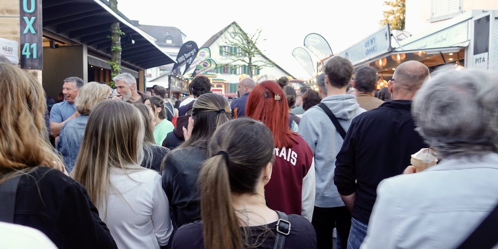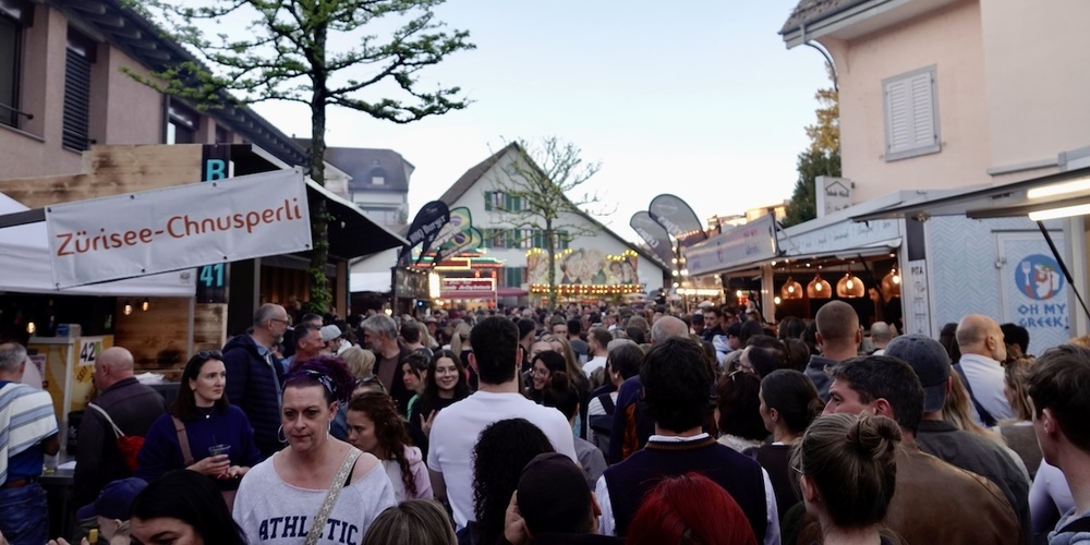 Das Frühlingsfest in Jona. Massen gutgelaunter Leute, Food aus aller Herren Länder, Schlange stehen vor dem Momo-Stand und feiern bis in die Nacht.